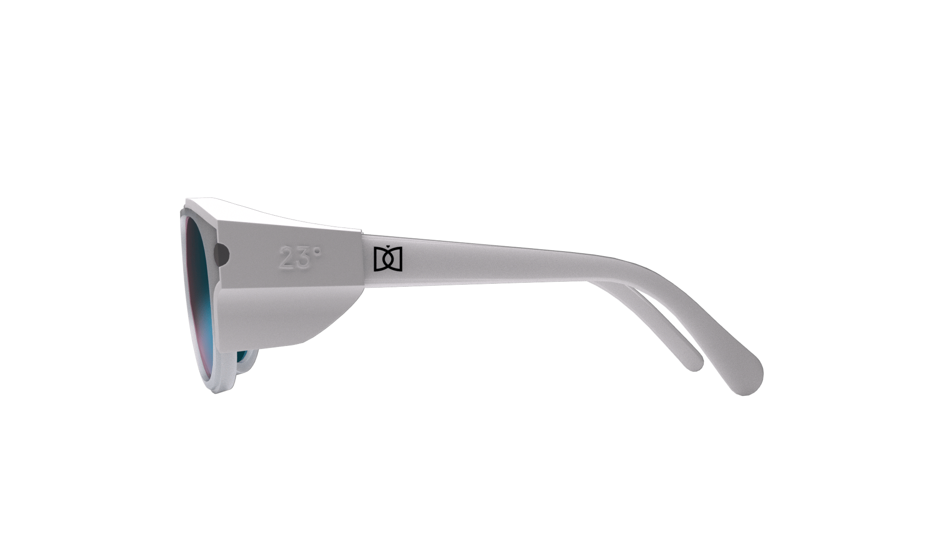 Lenti CAT.3 in policarbonato con specchiatura multistrato blu. Protezione UV100%. Logo DD marcato a laser.